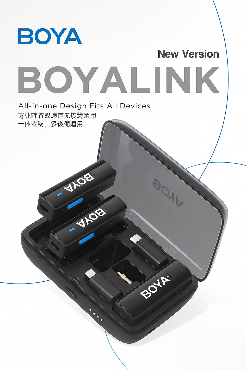 میکروفون BOYALINK 2 یک میکروفون بیسیم ارتقاءیافته و چندکاره است که بهراحتی صدایی شفاف و باکیفیت ارائه میدهد. این دستگاه با داشتن سه آداپتور قابل تعویض روی گیرنده، سازگاری کامل با دوربینها، دستگاههای موبایل و رایانهها را تضمین میکند. همچنین با برخورداری از حذف نویز دو مرحلهای و برد ارتقاءیافته تا ۳۰۰ متر (در خط دید مستقیم)، BOYALINK 2 به گزینهای ایدهآل برای پخش زنده، تولید محتوا و مصاحبههای خیابانی تبدیل شده است.
